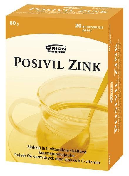 Posivil Zink kuumajuomajauhe — это порошок для приготовления горячего напитка со вкусом лимона, содержащий мед, цинк и витамин С.